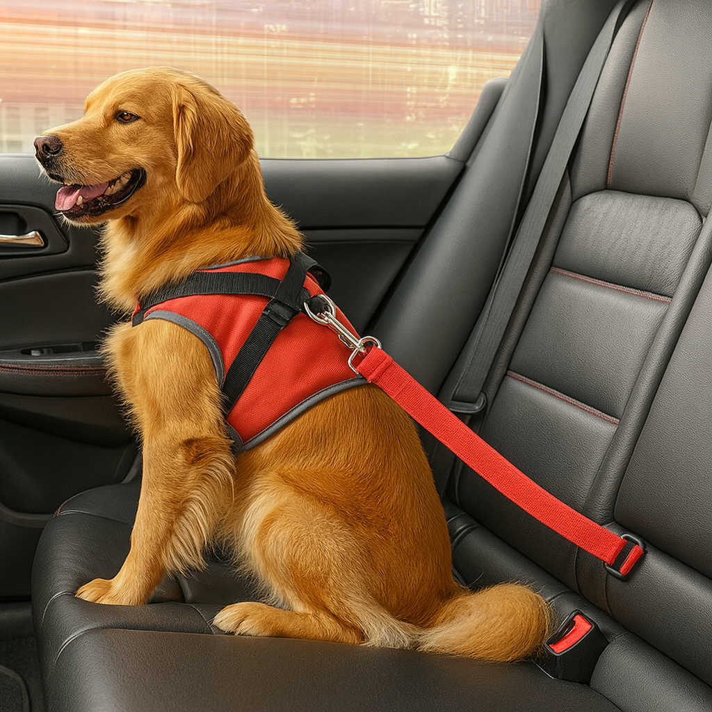 It clicks directly into your car’s seat belt buckle, adjusts to the perfect length, and keeps your dog comfortably secured — giving them enough freedom to sit, lie down, or move slightly, but preventing dangerous jumping around the cabin.